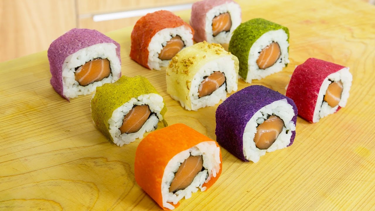 In this video, you will see an idea to decorate your sushi rolls with colorful sheets made from vegetables using a dehydrator, also you can use these sheets to make sushi rolls without nori seaweed.
