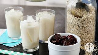 Such a simple milk to make from scratch and have on hand at home. Healthy, easy, and sweetened with dates - this non-dairy milk is a winner. Get the recipe for Oat Milk: https://www.allrecipes.com/recipe/266...
