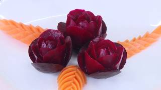 Beetroot Flower And Carrot Leaf Carving ─ Mrs Vahchef - Ragini